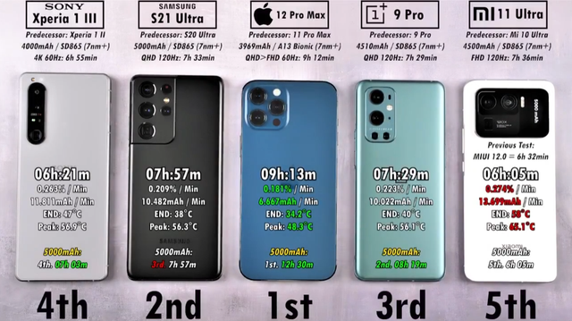2021年五款旗舰手机,续航与发热横评,“最佳机型”测试出炉